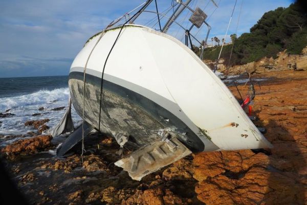 A Dufour 28 smashed at the entrance to Carry harbor on an easterly blow: skipper unhurt