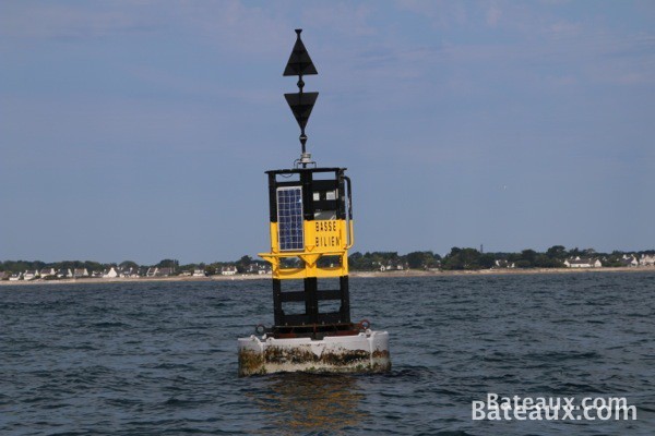 The coast is lined with numerous reefs. The furthest offshore are marked by the "Cap Caval", "Spineg" and "Karek kreiz" buoys, as well as the "ar Guisty" turret. Coming from the west, approach Loctudy from outside the "Boulanger" and "Billien" buoys. Coming from the east, keep well clear of the Mousterlin rocks ("La Vache" and "Men Vraz" turrets).