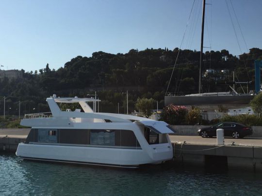 As far as navigation is concerned, it is similar to that of a motor catamaran. It has a great autonomy and consumes very little fuel. In the standard version, it is equipped with a 2x75 HP thermal engine which allows navigation either on lakes or in areas where there are no big swell constraints. Thanks to its small engines, it will be very competitive in terms of maintenance. For the same reason, it will not have the same speed as a classic motor catamaran and will reach 11 to 13 knots of cruising speed. As an option, two other motorizations are possible: 2x150 HP or 2x225 HP.