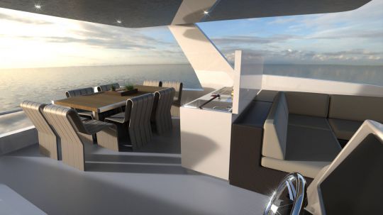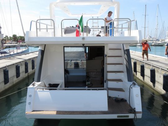 The word of the dealer, Evasion Yachting : "I find the concept very interesting, once you get past the aesthetics of the boat, which is a total departure from what is currently done in boating. It's a friendly, comfortable boat, where no concessions are made for comfort."