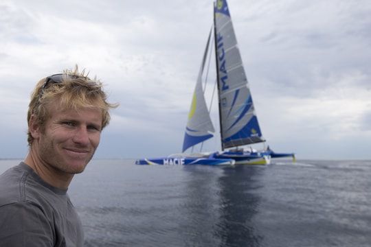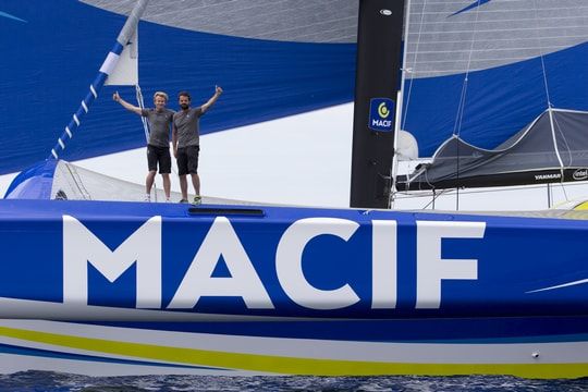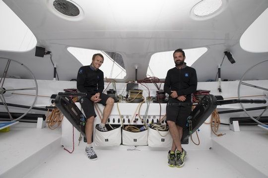 François Gabart and Pascal Bidégorry on the trimaran Macif