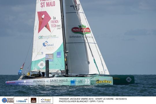 It was an Imoca that got off to the best start, Newrest/Matmut (Fabrice Amedeo/Eric Peron) followed by the Multi50 La French Tech Rennes Saint-Malo (Gilles Lamiré/Yvan Bourgnon). At 13 h 40, the monohulls were beginning to find wind âeuros past south âeuros and were hoping that the situation would improve.