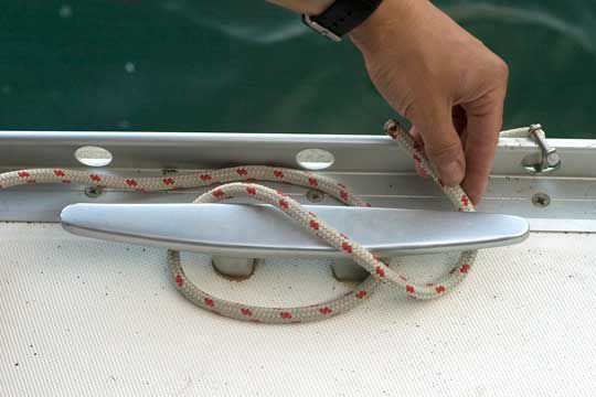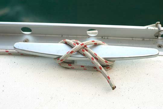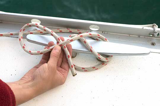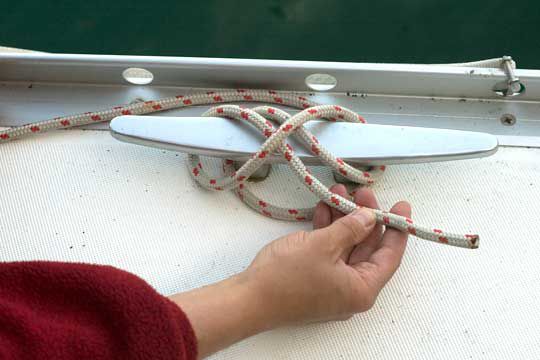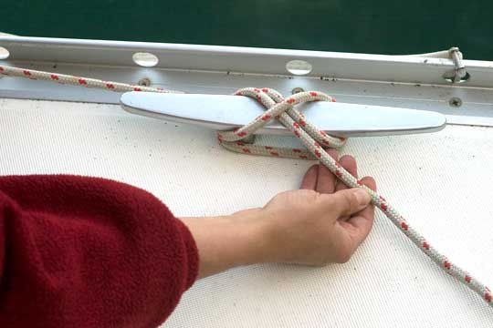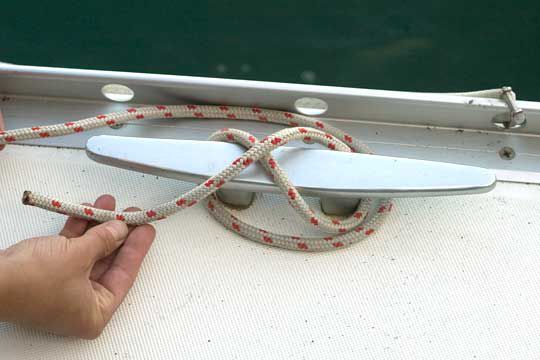 A cleat is not called a cleat knot, but "turning a cleat". The interest of this blocking is that it can be done under tension and even release itself under tension. The dead turn at the beginning is essential to ensure a good hold in the cleat.