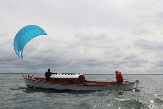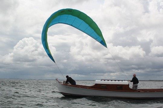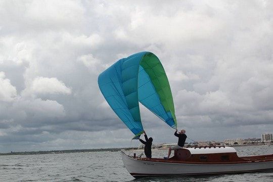 Manoeuvrable by a single person from the deck of a boat, the kite does not require any significant knowledge in the field. It adapts to all types of boats and can be easily stowed on board (no rigid or inflatable structures.) With the wing, it is possible to sail in the crosswind or downwind or even upwind for boats equipped with a daggerboard.