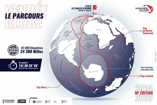 Every year, the event attracts millions of spectators. Starting and finishing in Les Sables-d'Olonne, it gives sailors the chance to share their adventure and compete against each other in a top-level sporting event. They cross the Atlantic Ocean, then the Indian and Pacific Oceans, before returning to the Atlantic after rounding the three legendary capes: the Cape of Good Hope, Cape Leeuwin and Cape Horn.