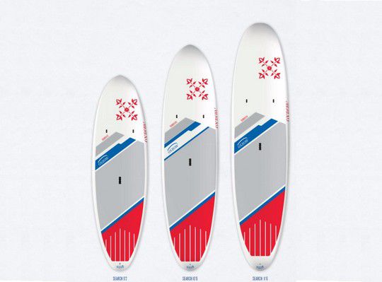 Search This SUP board, inspired by longboard surfing, is versatile for waves or flat sea and is inspired by surfing patterns with moderate rocker. The Oxbow Search is both maneuverable in the waves and stable on calm water. It is available in 3 sizes, depending on the rider's profile: 9'2", 10'6" and 11'6".