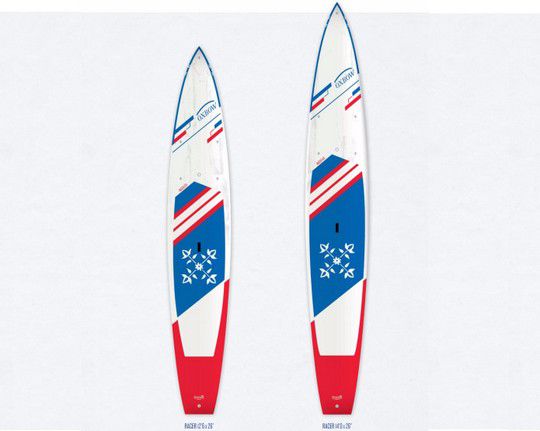 Racer : This competition board is built in "full carbon", which gives it ultra light weight, rigidity and maximum speed. It is ideal for racing on flat water, on the open sea, along the beach and on downwind courses, thanks to its very high speed potential and optimal stability to stay upright in all conditions. Available in 12'6 and 14'.