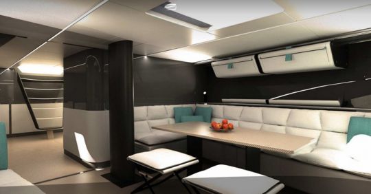 From this airlock, one also has access to the crew quarters, the guest cabins and the galley. Owners' privacy is also enhanced with one cabin located forward of the saloon, while the two guest cabins are located aft. The interior style is being developed with an innovative concept.