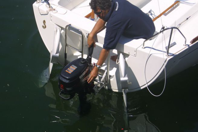 On a sailboat, the outboard motor is installed on the stern, with three installation possibilities :