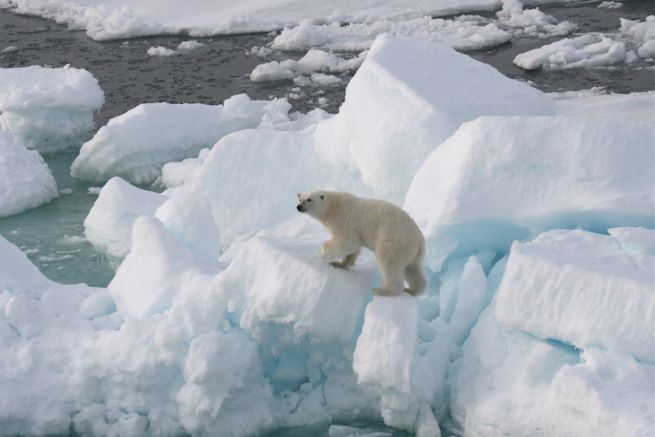 "Ahead of me at bow level, a polar bear had both paws resting on the deck of the port hull which was sinking under water. I immediately grabbed my pistol, which always stays by my side when I sleep, and fired a firecracker over his head, as per the procedure, thinking I would frighten him with the noise.