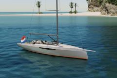 He decided to keep a classic touch by proposing coloured hulls - English green, burgundy, cream, navy blue... -, varnished mahogany coamings, a teak deck and a white lacquered narrow mast. The boat was presented at the Paris Boat Show in 1989 and was a great success. To date, with 240 units built, it remains a UFO in the history of yachting never a rather high-end sailboat and therefore relatively expensive - for its size - had known such a distribution, reserved for general public models at tight prices. And it's still in the yard catalog!