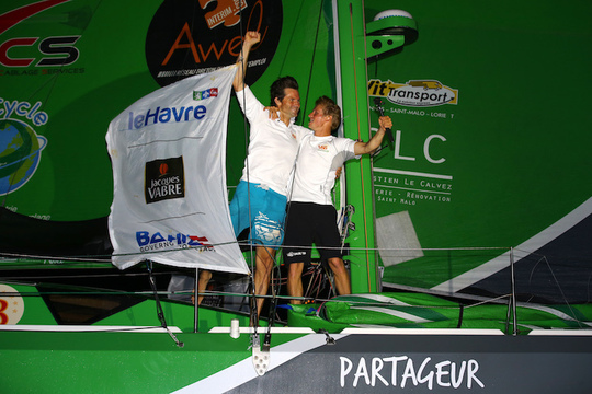 In the Ultime class, Sodebo led by Thomas Coville and Jean-Luc Néalias euros, considered as the favorites of the race, won by establishing a new record in 7 days 22 h 7 min 27 s . The precedent was held since 2007 by Franck Cammas and Steve Ravussin (Groupama) who completed the course in 10 days and 38 minutes.