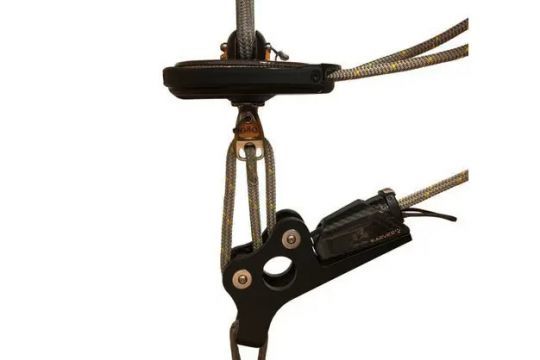 Built on the basis of the KJSK15 blocker, this kit allows the installation of a 3:1 hoist under a releasable forestay. It is attached to the deck by a lashing on a simple bridge. Thus, there is no need to have the blocker attached to the deck, and the best part is that when it is time to stow it, there is nothing left in place. Compact, the tack is not high above the deck. This 3-jaw blocker is capable of supporting 1.56 tons. The bracket is available at 1620 euros (all taxes included).