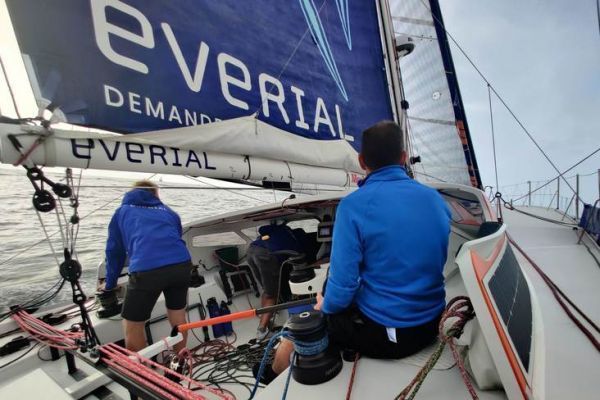 For Erwan le Draoulec and Tanguy Leglatin aboard the Class40 Everial, the program will consist of a week of training, including day trips and offshore sailing, with the aim of testing the new gennaker trim. This will be followed by a few days' rest, before we go on stand-by to wait for a good weather window to bring the boat in. Erwan tells us: "If we had to leave tomorrow, we could. The boat's ready, there's nothing left to tinker with."