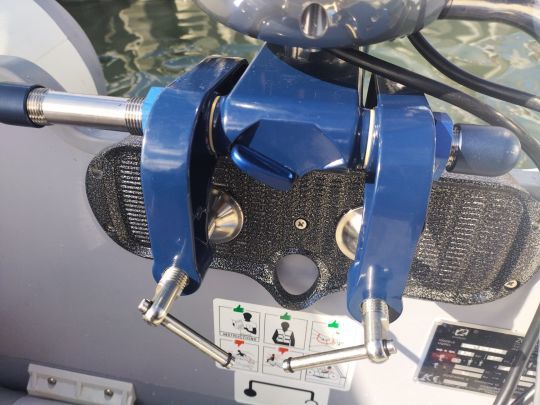 The outboard is mounted on the transom in the conventional way, using two screws to press it onto a chair or transom reinforcement. The operation is quick and easy. A well-placed, ergonomic handle is used to tilt the base out of the water. If there's no propeller to remove, it's always a good idea to take the membrane out of the water.