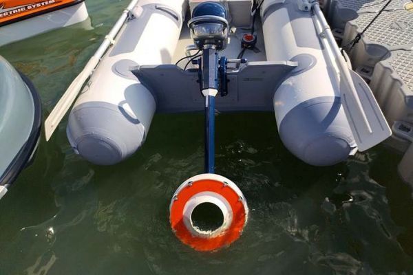 The Fin5 is the first outboard motor from the young French company FinX Motors . After several years of development, the company has finalized the adaptation of its diaphragm technology from industrial pumps to boat propulsion. The distinctive feature of the Fin5 is that it has no propeller. Instead, the propulsion force results from the displacement of a flexible diaphragm by means of magnets, without any rotating parts or gears.
