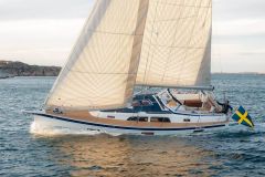 L'Adelaïde 50 the first model of the adelaide shipyard is aimed at fast, off-the-beaten-track cruising. This 50-foot multihull, built in PET polyester sandwich on a plywood structure, is claimed to have a mid-load displacement of 12.03 T. By making maximum use of furniture as a structure, the aim is to optimize the performance of the yacht, which boasts 123 m2 of sail area. As naval architect Vincent Lebailly explains, the shipyard has set the goal of sailing comfortably on all seas: "The shipyard's founder and customer of the first boat wanted to be able to sail just about anywhere, and not just where it's hot. So one of the criteria was the interior helm station behind the windshield, with winches also on the center cabinet inside."