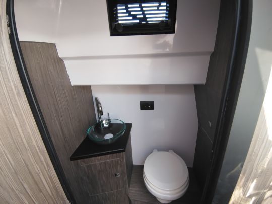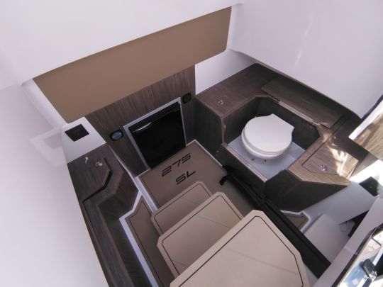 Descending through the sliding companionway door on the port side of the steering wheel, the passenger on a Next 275 SL will find the toilet facilities on the starboard side and a basic galley on the port side. The aft berth under the cockpit is dedicated to storage.