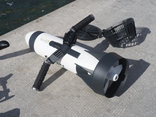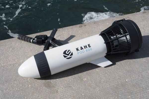 The Kahe Pod 600 is a multi-purpose electric pod for your boat. Weighing less than 5 kilos, it can be transformed into a dinghy motor, an underwater scooter or a paddle or kayak propeller. The unit is IP68 waterproof to a depth of 5m.