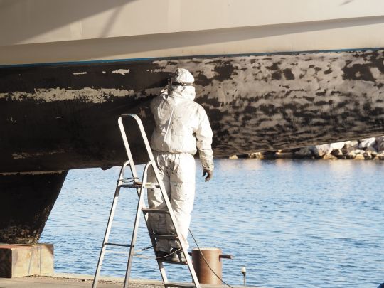 The first step is to locate any bubbles that have appeared as a result of osmosis, and scrape them away until the hull is exposed. The area must be completely dry, and rinsed regularly with fresh water. The aim is to remove all the saline elements that cause osmosis.
