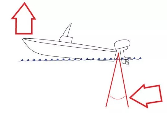 The 1st method is the trim (not English for trim) of outboard motors. This involves adjusting the angle of the motor in relation to the transom, as well as the angle of the propeller thrust in relation to the boat's center of rotation. Raising the motor adds torque, which raises the boat's bow. Conversely, when the motor is lowered, a torque is added that pushes the boat against the wave.