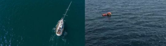 Even a half-submerged boat is always more visible than a raft, especially in heavy seas!