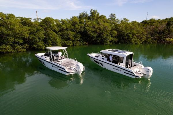 The Quarken 27 is the shipyard's first model, and comes in three versions on the same 8.35 m hull. The Open version is agile and sporty, the T-Top version offers protection thanks to its fiberglass top, while the Cabin version provides comfortable warmth. All boats have a similar configuration from console to bow. The Quarken 27 is well equipped as standard, with quality materials, but it also offers an extensive list of options.