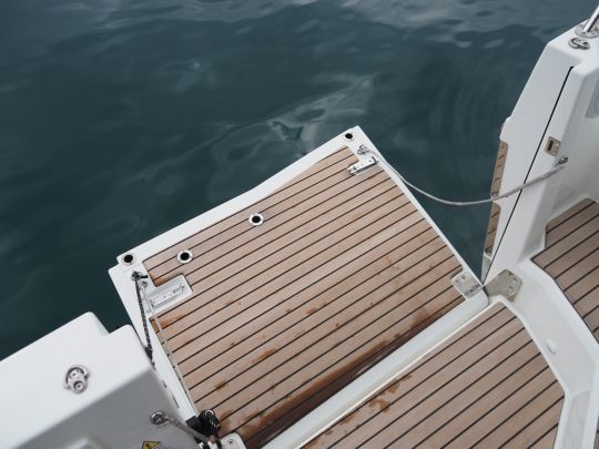 A swim ladder and safety lines can be attached. Handling this bulwark requires the hoist to be perfectly clear, and not rolled up on itself. On this family boat, handling is a little physical and should be reserved for an adult.