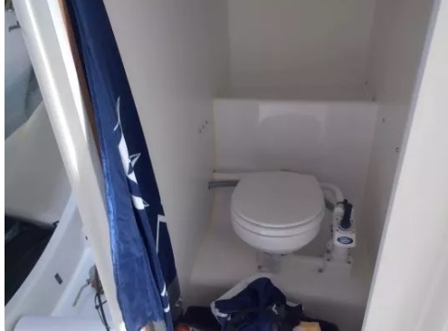 At the mast step, a bulkhead houses the toilet, preceding the forward hold. This feature, a sign of a certain level of comfort for a unit designed for racing, testifies to the desire to accommodate a mixed amateur crew.