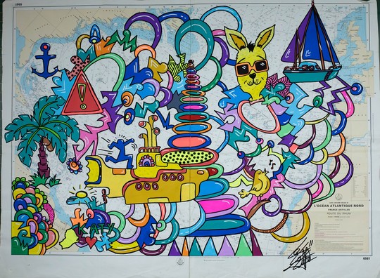 Rescue at sea is an issue of vital importance, particularly in the Mediterranean and along the French coast. Organized by the SEAtizens association, an auction entitled "Un Trésor à la Carte" is planned. It will be hosted by the Millon auction house. More than forty unique works will be on offer, all created on nautical charts signed by renowned sailors. These works are the fruit of collaboration between artists and sailors to raise public awareness of the cause of rescue at sea.