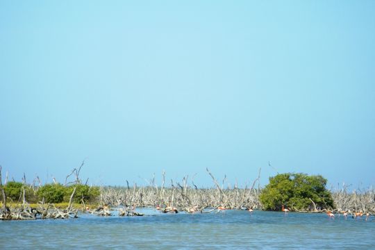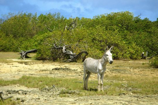 This sanctuary is home to several hundred animals that are very familiar here. Access is via a rocky path. On the left is the airfield runway and, on the opposite, a lunar landscape of five-metre-high cacti, thorn bushes and trees petrified by the adjacent salt pans. In the middle of the marshes, an impressive number of pink flamingos.