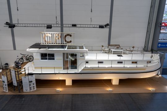With LaPéniche eXP, the CPC shipyard has taken a new step towards eco-responsible river navigation. This 15-meter model combines an electric motor with an on-board energy production and storage system. Equipped with a 40 kW ePropulsion motor, it draws its energy from an 80 kWh battery pack, complemented by 1,760 W of solar panels and a 14 kW generator running on biofuel. This architecture provides a range of 15 hours at 8 km/h, equivalent to three days' sailing without recharging.