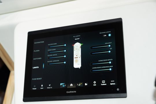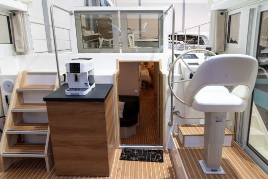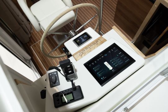 Designed for optimum user experience, LaPéniche eXP features a hybrid cockpit, including an electric sunroof and adjustable pilot seat. Garmin EmpirBus technology centralizes controls via a 12-inch screen, including Navionics GPS navigation and a wireless autopilot. The system is complemented by a space for electric bicycles with optimized recharging sockets.