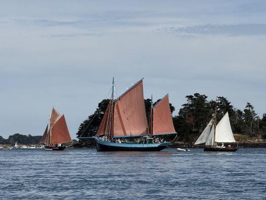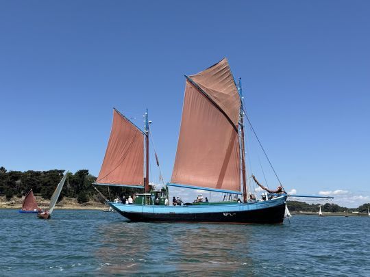 Since then, Notre-Dame de Rumengol has taken to the sea again each season. Three professional sailors man the boat, and passengers take an active part in navigation: hoisting the canvas, easing the sheet, steering to leeward. Each cruise becomes a suspended moment, a plunge into life aboard the old coasters.