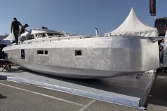 The hull is reinforced with triangulated carbon mesh, and the chainplates are digitally cut.