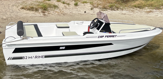 Built in Bordeaux by B2 Marine, the 135 Fishing boasts a 100% French positioning. With a hull length of 4.52 m, a beam of 1.92 m, a weight of 400 kg (excluding engine) and an engine capacity of up to 40 hp, the 135 Fishing is the perfect choice for the French market. Its buoyancy is ensured by integrated reserves, enabling it to boast CE C5/D5 category approval.