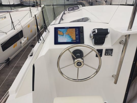 The reduced draught of 0.75 m and the beaching fins allow beachage or anchoring in tidal zones. Visitors from Brittany and Normandy are taking a keen interest, aware of the advantages of such a system.