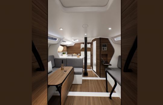 The furniture modules can be dismantled for racing and reinstalled for pleasure sailing. This concept, inherited from the racing world, reduces the weight of the boat by around 300 kg in regatta configuration.