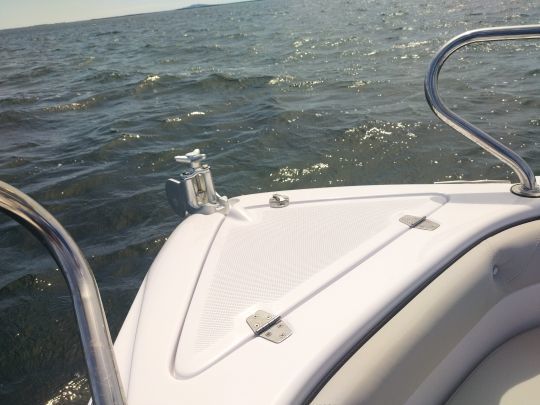 The thick, snug-fitting cushioning rests on a set of lockers offering surprising storage capacity for this size of hull. Removing the cushions reveals several molded hatches housing mooring gear, life jackets and safety equipment. The optional electric windlass fits perfectly into the anchor locker, without cluttering up the deck.