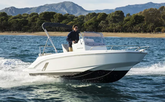 Compared to a Quicksilver 555 Activ, it's sportier, more seaworthy, and benefits from better weight distribution thanks to its stepped hull.