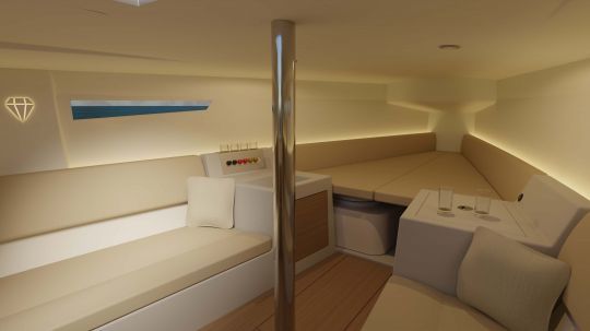 The Leopard boasts 4 real berths and a small galley. The interior is bright and modern. With a hull length of 8.40 m (9.20 m with bowsprit), space on board remains limited, but seems usable for extended weekends. It's still a dayboat, but it's versatile, with plenty of living space.