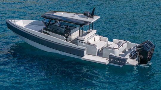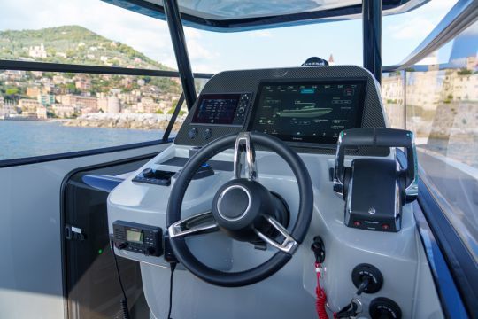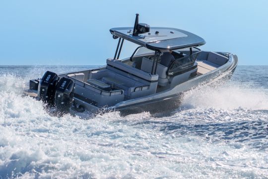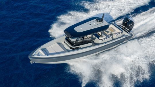 Because that's what it's all about: complete customization. The deck layout can be modified, the interior redesigned, and the equipment chosen from the catalog or custom-designed. On the first unit, presented at the Monaco Yacht Show in October 2025, we discover a forward cabin with double berth, toilet, cockpit convertible into sundeck, central bar with refrigerator, grill, and multiple options according to the owner's program. Even paintwork, upholstery and electronic equipment can be adapted.