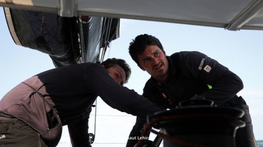 No weather briefing or technical debriefing today. We're leaving the routing for the rituals, putting away the fleeces to talk playlist. Luke Berry and Antoine Joubert, before setting off on their Atlantic crossing in an Ocean Fifty, come aboard for a no-nonsense interview.