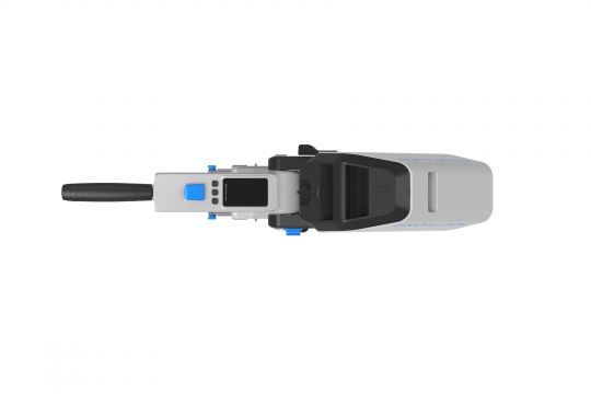 The battery is attached using a quick-connect system, with no visible wires or connectors, thus minimizing handling errors.