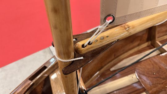 Finally, it was Ronan the grandson, now a father, who recovered the canoe in 2023 and came up with the idea of saving this family heirloom. Living near Tours, he imagined it as an introduction to sailing for his 9-year-old daughter, who was about to embark on her first sailing course. Lacking time, he entrusted the restoration work to Antoine Potier of the AP Yachting yard. The bottom and transom were replaced, and a laminate was laid under the hull to ensure watertightness. Everything was sanded and then varnished or painted. The restoration retains as many original parts as possible.