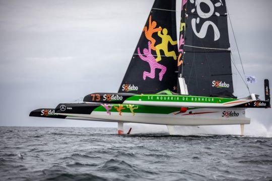 The timing is precise. This Monday at 11 a.m, Sodebo Ultim 3 has left its base in Lorient. The trimaran will now head for Ushant Island, the starting and finishing point of this legendary round-the-world race. The line, located between the Créac'h lighthouse and Lizard Point, will be crossed during the night. This trajectory is designed to take advantage of a narrow but promising weather window.