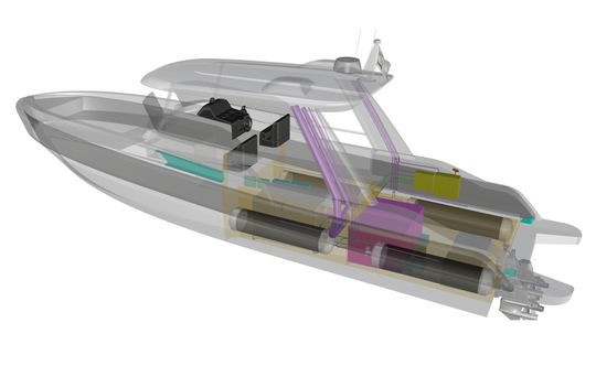 System integration is intended to be intuitive and straightforward, inspired by the prototypes built for America's Cup chaseboats. Filling the tanks is claimed to take less than three minutes, addressing one of the main weaknesses of electric propulsion: recharging time.