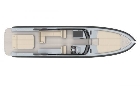 The deck is raised by 10 centimetres to ensure natural and forced ventilation of the compartments. The air intakes are discreetly integrated into the T-top uprights. A work of naval architecture that draws on the shipyard's experience in custom-building chaseboats for yachts.