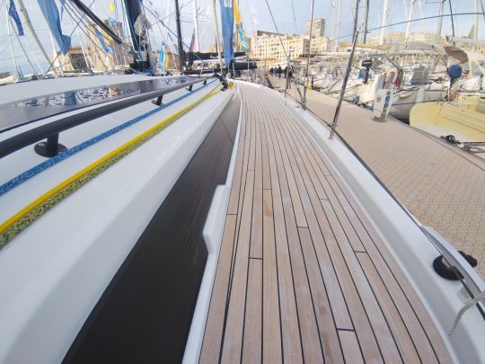 Wide, unobstructed passageways allow easy movement between cockpit and bow, with no marked obstacles. An additional step between cockpit and deck facilitates passage, limiting the climbing movements not appreciated when sailing or at anchor.