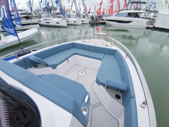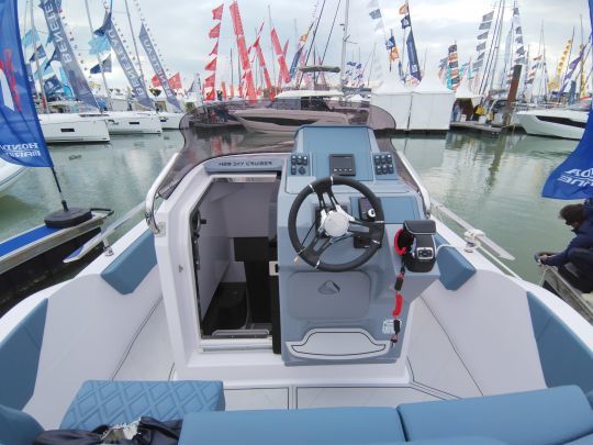 Approved in category CE C B, the 4XC H28 Day Cruiser can accommodate up to 11 people during daytime cruising. Budget-wise, the model on display is available for ?135,000 (incl. VAT) with 350 hp. With an unladen weight of around 2,100 kg, it can be transported by road, provided it is equipped with a tractor unit and a suitable trailer.